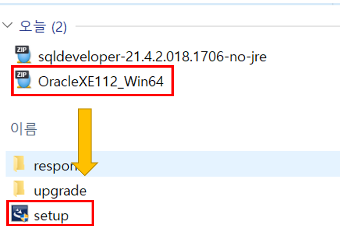 2. 다운로드 받은 zip파일을 압축풀고 sqleveloper.exe 파일 실행시켜 설치를 진행한다.