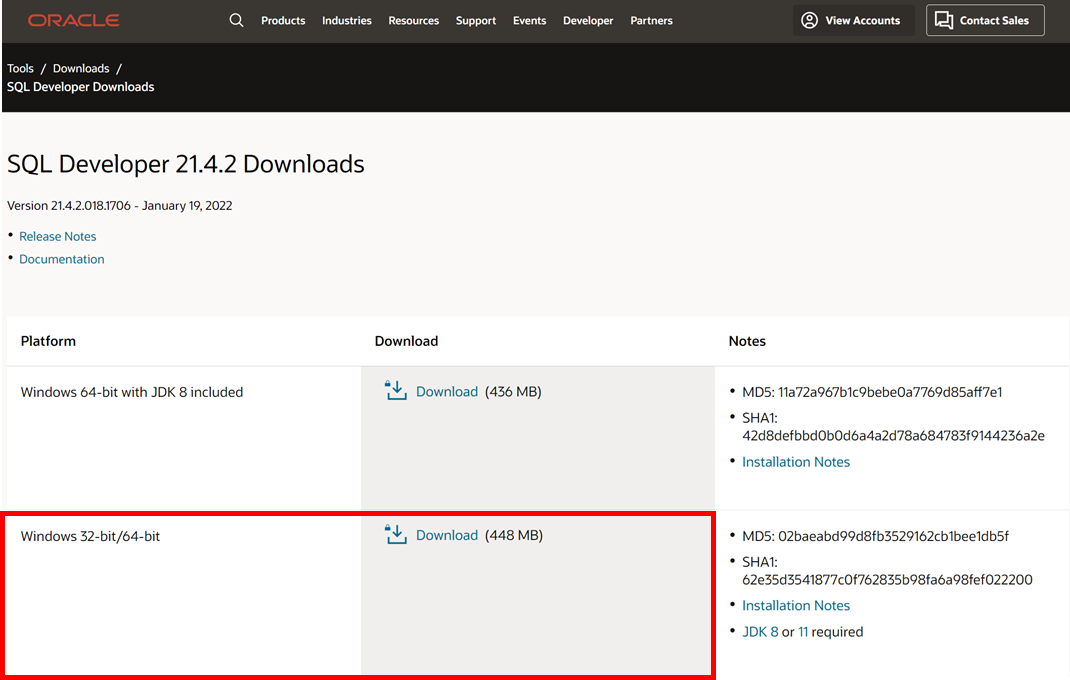 1. 오라클 홈페이지에서 SQL Developer 파일을 다운로드한다.