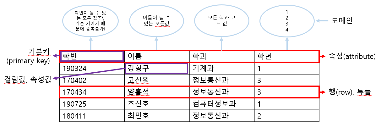 또한 속성(attribute)은 릴레이션이 갖는 성질(property)을 의미하며 관계 데티어 모델에서 데이터의 가장 작은 논리적 단위이다.