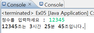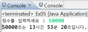 System.out.printf("%d초는 %d시간 %d분 %d초입니다.", time, hour, minute, second); //내용 출력