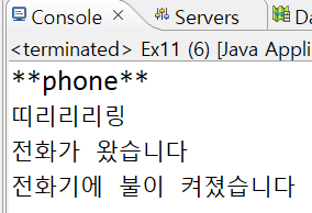 phone.printLogo(); //상속받은 인터페이스의 default메소드 바로 사용가능