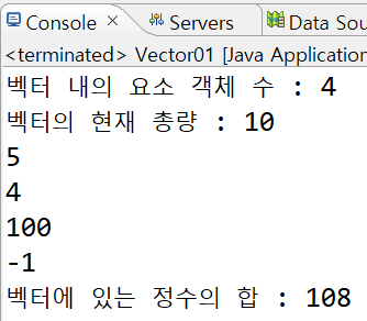 System.out.println("벡터에 있는 정수의 합 : " + sum);