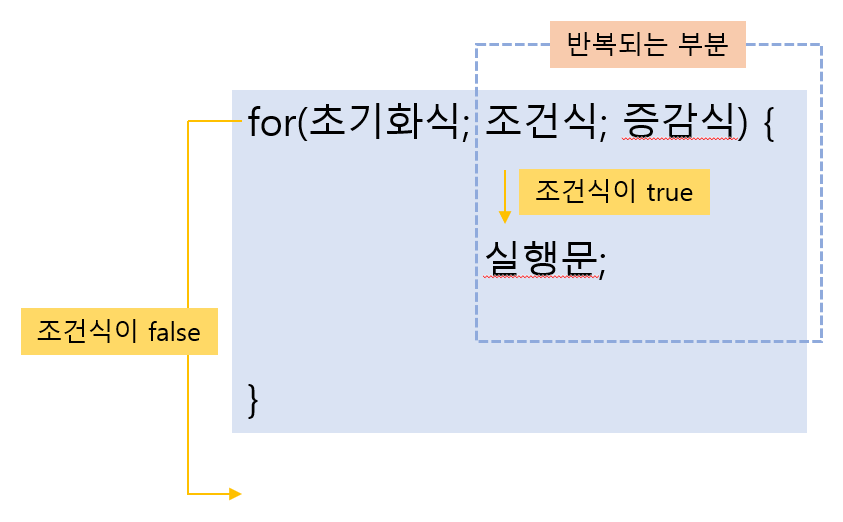 //for(초기화식; 조건식; 증감식;) 조건식이 true일 경우 실행문 실행.