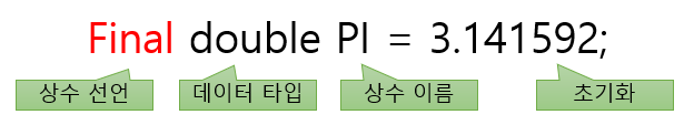 - 이처럼 final은 특정 상수를 정의하는데에 사용된다